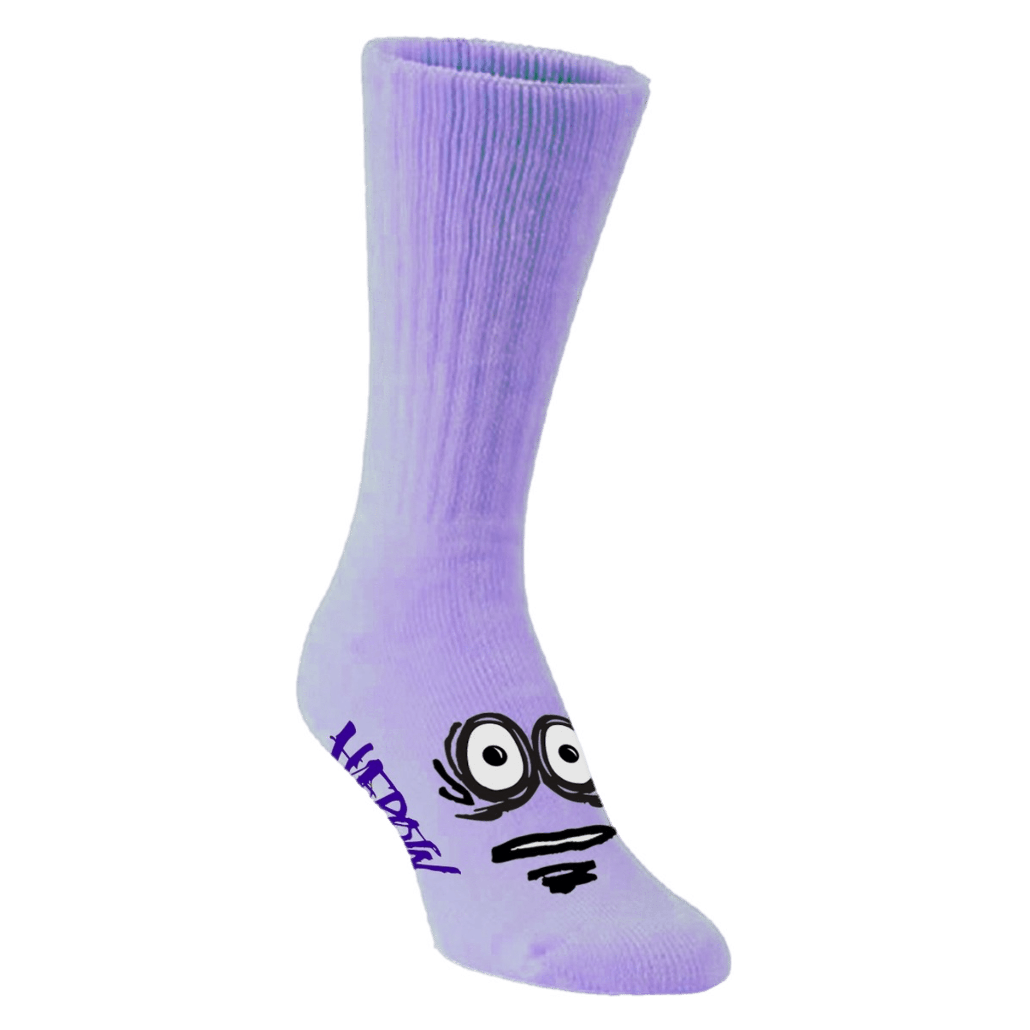 Heorin skateboards classic big egg lavender socks. High cut sock with the classic heroin egg eyes print. Premium soft cotton socks perfect for the next curb session.