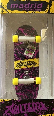 A Finger Board replica of one of the most infamous skateboards in the movie back to the future with Michael J Fox. Everything is exactly the same from the truck covers to the top graphic the wheel colors right down to the sticker emblem. Add to your Finger Board collection or get the mini Valtera Deck to put next to the life-size Madrid Valtera Deck that will be coming out in the near future.